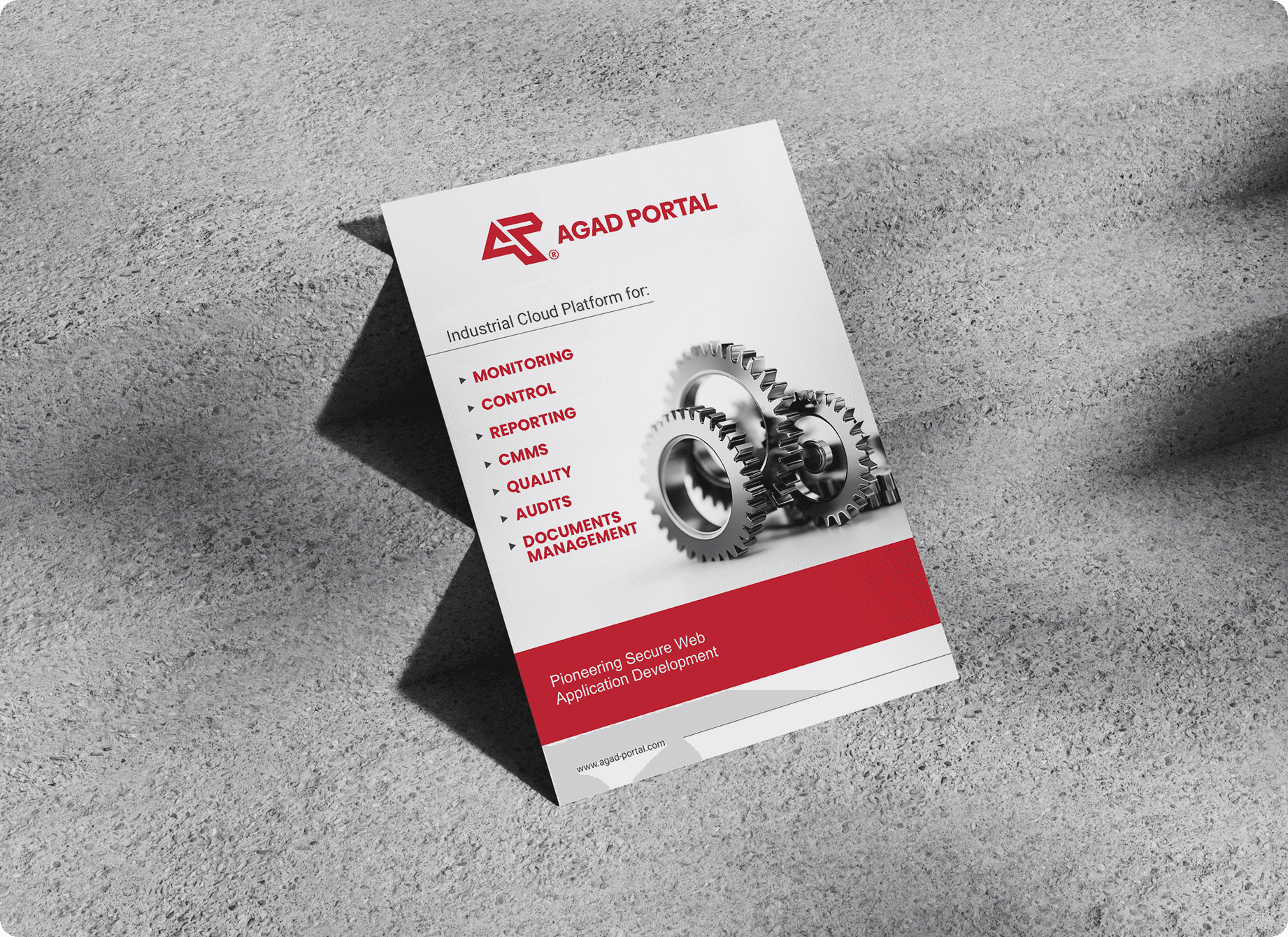 The brand had a partial strategy in place, but lacked clear, focused messaging. We needed to define what AGAD Portal actually stands for before we could show it visually. Once the positioning was clear — seamless integration as the core promise — the visual identity followed that logic. The logo became a continuous ligature of "A" and "P" with no breaks, no gaps. Because if the platform connects everything without friction, the brand mark should do the same. The gear showed up everywhere in industrial branding, so we didn't avoid it — we reimagined it. Sometimes it's an icon. Sometimes it's a 3D element in motion. It reinforces what the platform does (connect systems, keep things running) without becoming a visual crutch. The rest of the identity followed the same principle: clear structure, intentional repetition, and no unnecessary decoration. Every visual decision pointed back to what the product actually does.