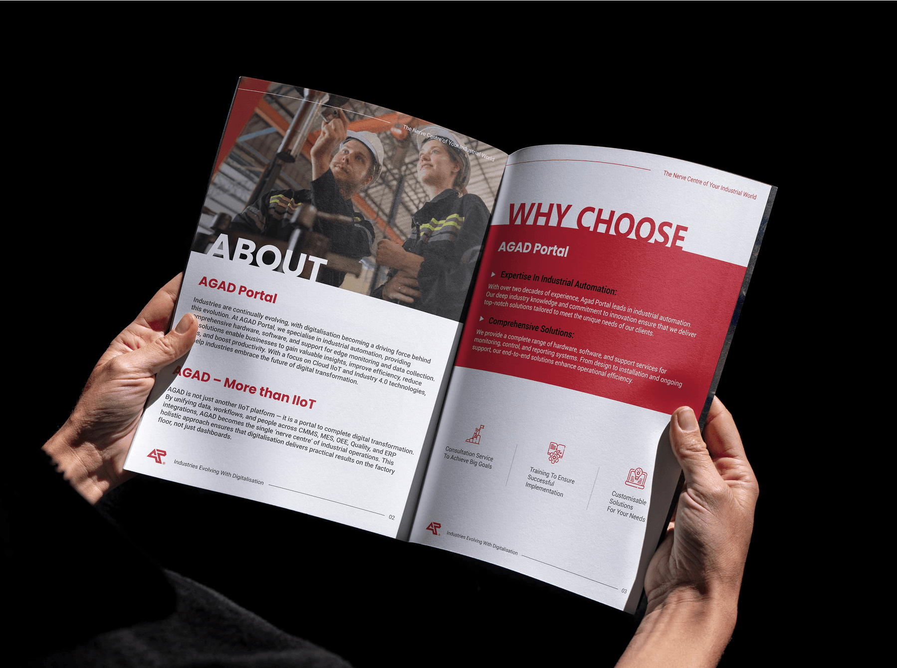 A brand system that works across investor decks, product demos, and sales conversations. One that doesn't require a technical background to understand, but doesn't oversimplify for people who do have one. AGAD Portal now shows up as a credible, scalable solution in a crowded market. The brand communicates 40+ years of manufacturing experience without feeling legacy. It positions advanced technology as accessible rather than intimidating. For the company, it created internal alignment — everyone from product to sales could point to the same visual and strategic foundation. For the market, it shortened the path from "What is this?" to "Let's talk implementation."