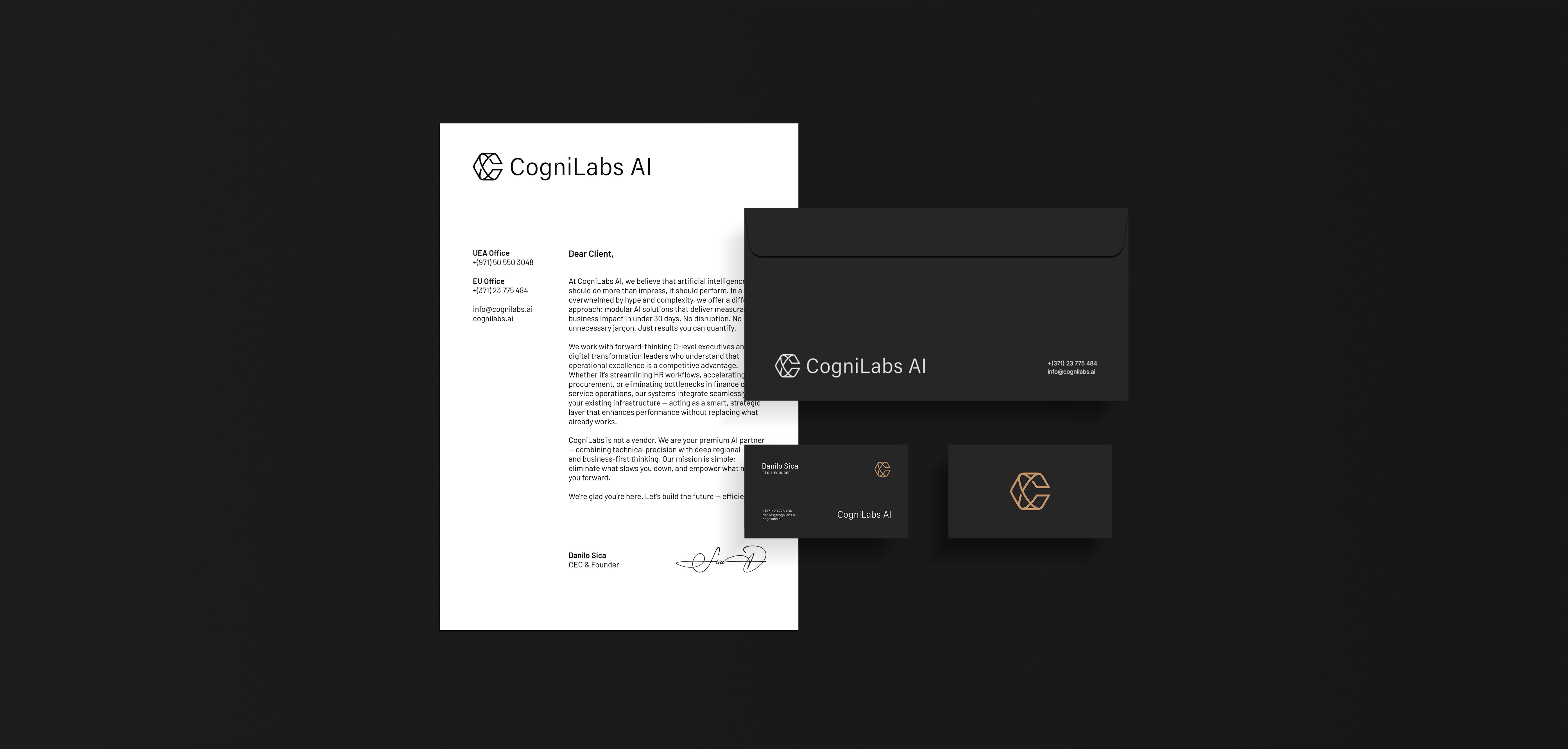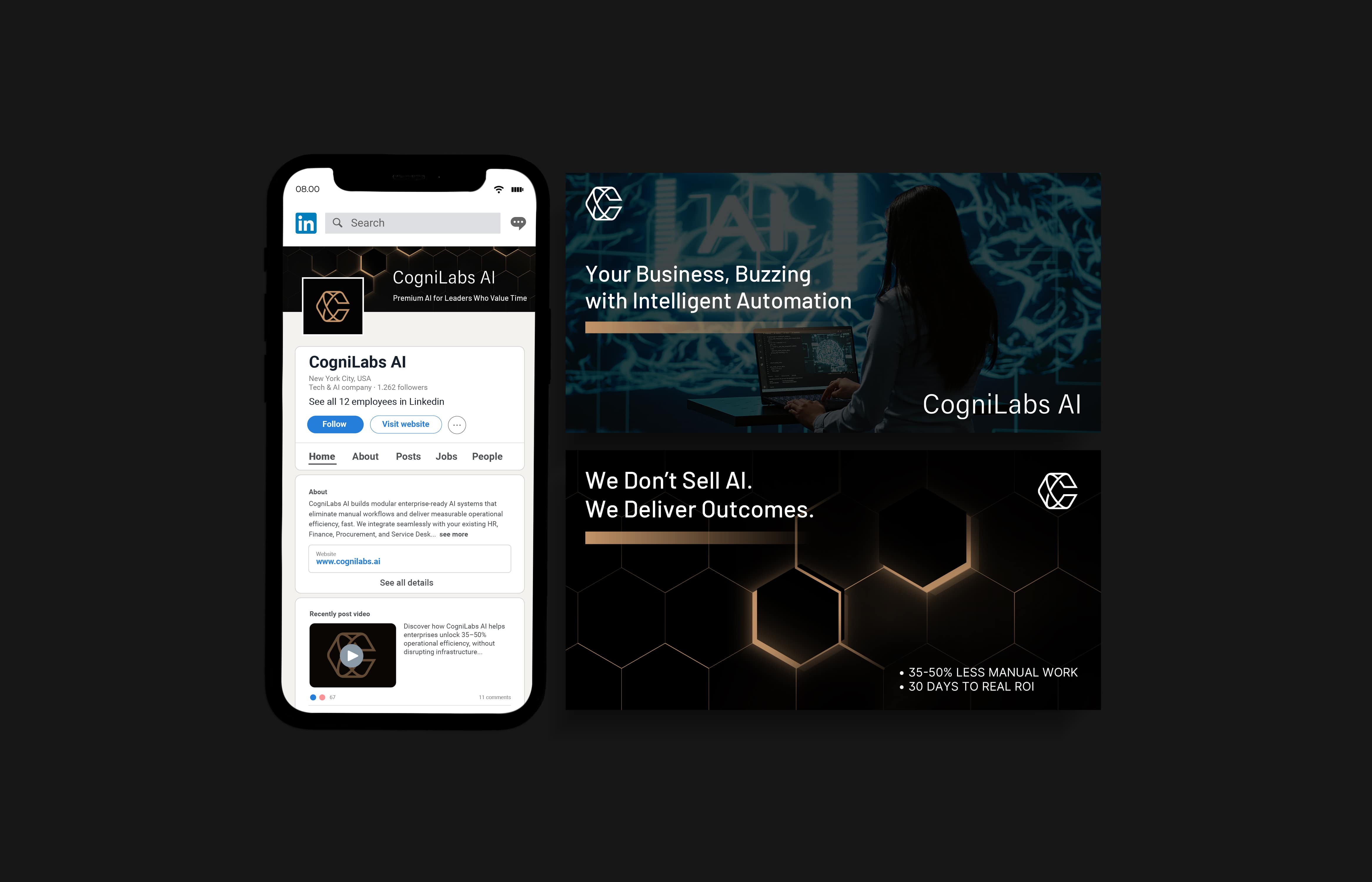 The AI market is full of big promises and vague timelines. Most vendors sell innovation as a concept — long implementation cycles, experimental pilots, consulting engagements that stretch for months. Meanwhile, enterprise leaders are under real pressure. They need proof and speed, not speculation. CogniLabs AI had a strong operational model and a clear value proposition: measurable ROI in under 30 days. But the brand didn't yet reflect that clarity or command the trust needed to sell into the C-suite.